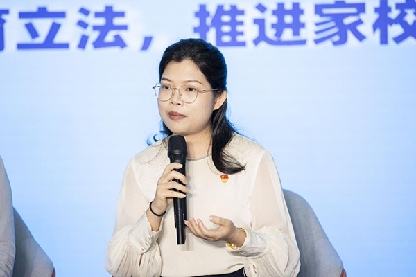 “家長要做好家庭教育,家庭教育要配合學(xué)校教育,學(xué)校和家庭配合是做好家庭教育的關(guān)鍵”,家長代表深圳市兒童青少年健康發(fā)展協(xié)會(huì)理事安天麗也談到自己對家、校、社各盡其職、合作共贏的理解,她認(rèn)為家長要積極創(chuàng)建各種親子家庭活動(dòng),緊密親子關(guān)系;積極參與社區(qū)組織的家庭教育指導(dǎo)和實(shí)踐活動(dòng),提升家庭教育能力;同時(shí)為孩子創(chuàng)造社會(huì)實(shí)踐的機(jī)會(huì)。