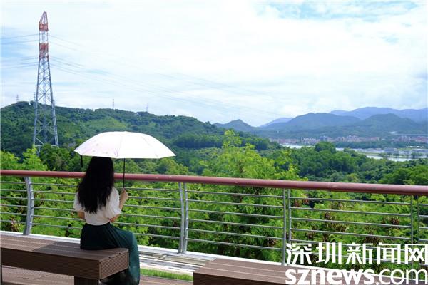 在綠道上,有多個(gè)位置可俯瞰深圳水庫,遠(yuǎn)眺梧桐山電視塔、仙湖植物園、東湖公園等美景。