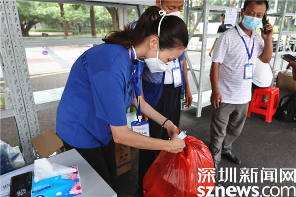 在新平村口,記者看到村口外圍已用水馬進行合圍,來自街道、疾控、社區(qū)還有大望實業(yè)股份有限公司、梧桐山實業(yè)股份有限公司等單位的工作人員正在準備開展工作。在合圍的多個出入口處設置了快遞、外賣投放點,由防疫人員為中、高風險的居民送貨上門。