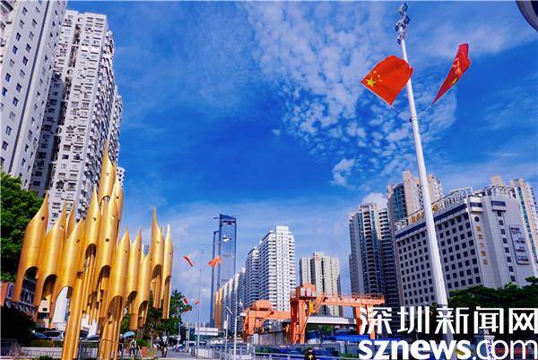 讀特客戶端·深圳新聞網(wǎng)2022年10月1日訊(記者 劉嘉敏)國慶假期第一天,行走在羅湖區(qū)的大街小巷,處處洋溢著喜慶的濃厚氛圍。一面面鮮紅的國旗懸掛在城區(qū)主次干道,在藍天白云的襯托下,鮮艷的“中國紅”迎風飄揚,成為城區(qū)一道最靚麗的風景線。深圳新聞網(wǎng)記者帶著鏡頭走進羅湖,將這一幕幕迎風飄揚的“紅色”定格。