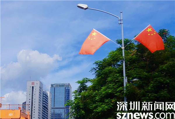 五星紅旗迎風(fēng)飄揚(yáng) 羅湖國慶氛圍濃郁