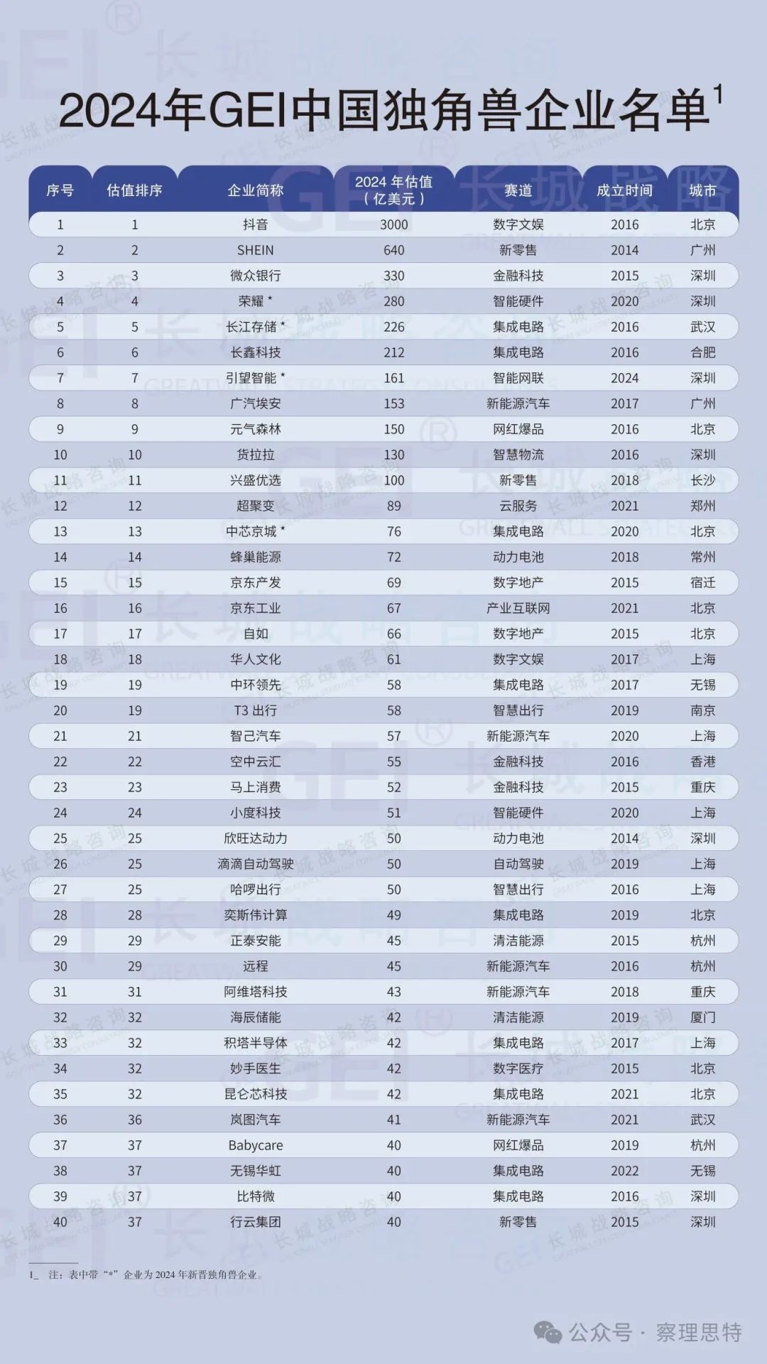 ▲《2024年GEI中國獨(dú)角獸企業(yè)名單》(部分)