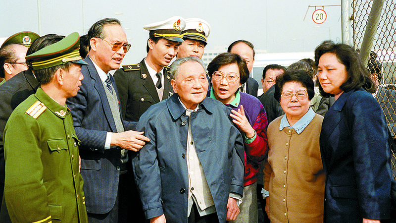 1992年,鄧小平同志在深圳皇崗口岸常情眺望香港