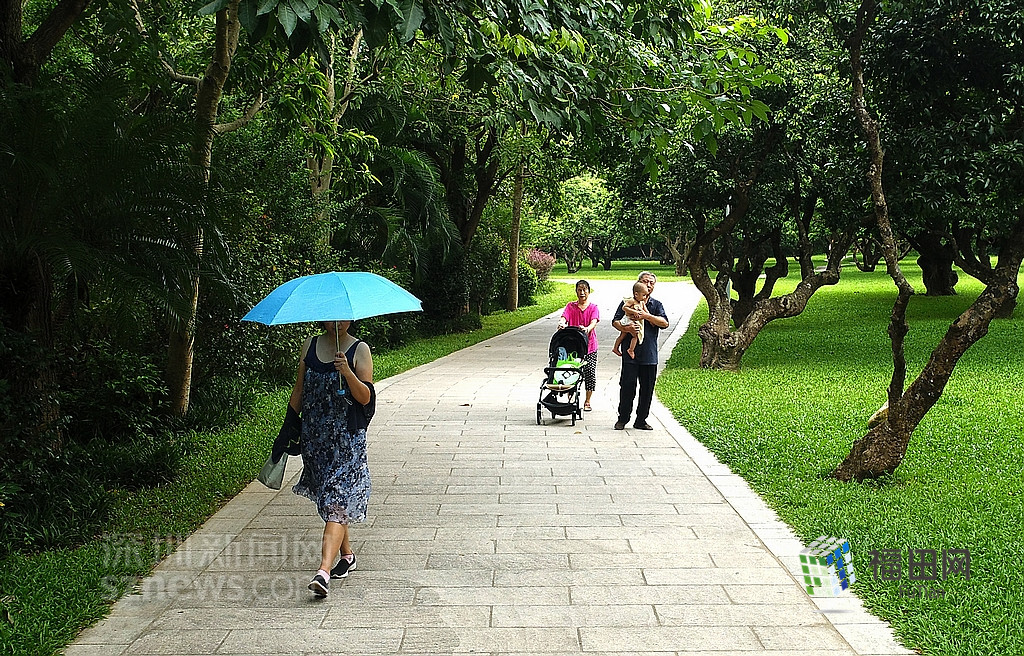 在梅林公園的綠道中,有三三兩兩散步的居民,有帶著小孩學(xué)騎車的媽媽,還有在園內(nèi)剛剛健身完的老人。