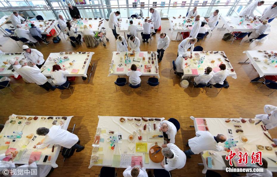 當(dāng)?shù)貢r間2018年2月28日,德國愛爾福特,當(dāng)?shù)嘏e辦香腸廚藝比賽。圖片來源:視覺中國