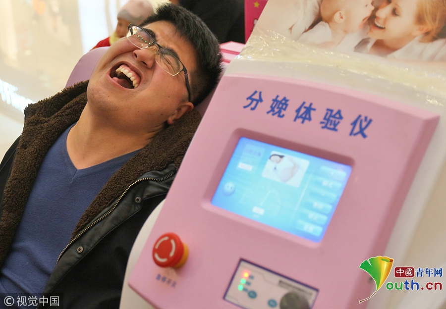 2018年3月8日,“三八”婦女節(jié),山東煙臺大悅城提供了一臺“分娩體驗儀”供男士免費體驗,讓他們體驗女性分娩時的陣痛,了解女性分娩時的忍耐與艱辛。