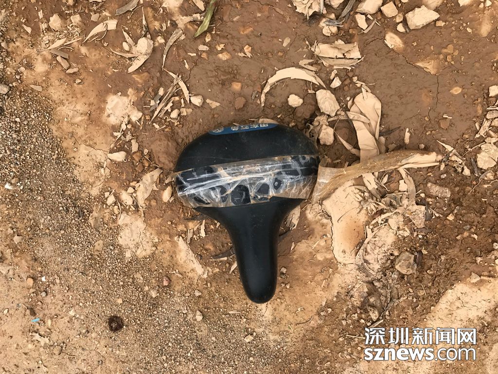圖為小藍(lán)單車存放處有一個座椅掉落在地上