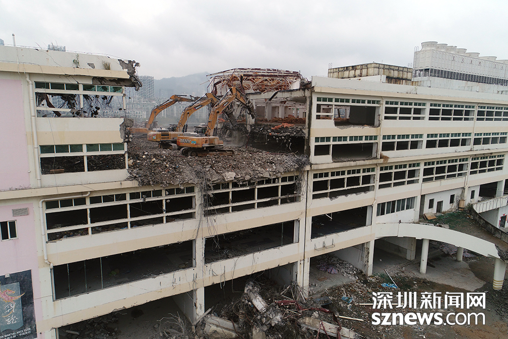 漁人碼頭拆除現(xiàn)場(chǎng),原漁人碼頭水產(chǎn)交易市場(chǎng)的頂層已快拆除過(guò)半