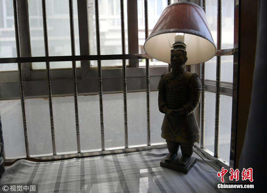 兵馬俑元素在這家民宿里被運用在各種小細節(jié)里,圖為兵馬俑造型的臺燈。圖片來源:視覺中國