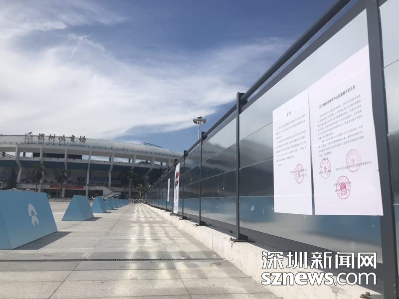 在進入深圳體育場的路上,圍擋張貼了改建公告