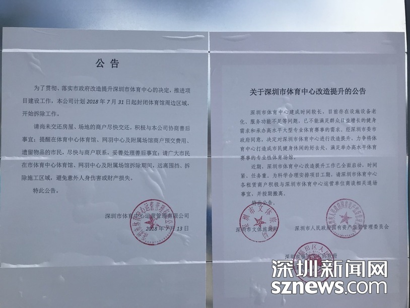 在進(jìn)入深圳體育場(chǎng)的路上,圍擋張貼了改建公告