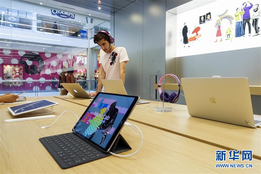 8月2日,顧客在美國(guó)紐約一家蘋果專賣店選購(gòu)商品。 新華社記者王迎攝