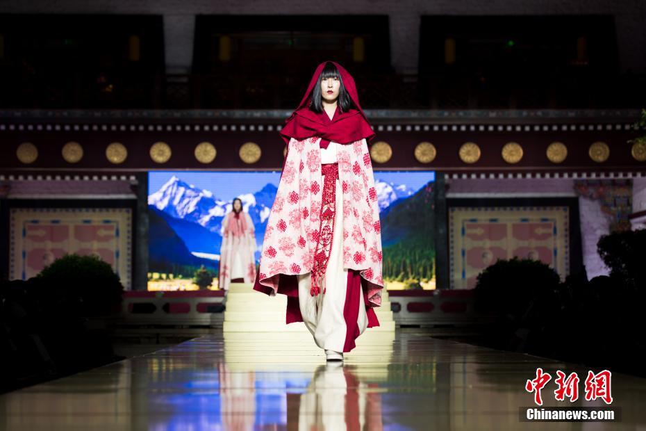 8月12日晚,由西藏職業(yè)技術(shù)學院與北京服裝學院共同打造的“凈美雪頓·美好生活”西藏民族服裝與服飾展演活動在拉薩舉行。現(xiàn)場通過傳統(tǒng)篇、現(xiàn)代篇與未來篇三個篇章,展演了藏族傳統(tǒng)服裝26套,設(shè)計創(chuàng)新服裝58套,共計84套服裝。圖為模特展示現(xiàn)代設(shè)計的創(chuàng)新藏族服飾。中新社記者何蓬磊 攝