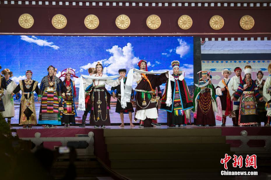 8月12日晚,由西藏職業(yè)技術(shù)學院與北京服裝學院共同打造的“凈美雪頓·美好生活”西藏民族服裝與服飾展演活動在拉薩舉行。現(xiàn)場通過傳統(tǒng)篇、現(xiàn)代篇與未來篇三個篇章,展演了藏族傳統(tǒng)服裝26套,設(shè)計創(chuàng)新服裝58套,共計84套服裝。圖為模特展示藏族傳統(tǒng)服飾。中新社記者何蓬磊 攝