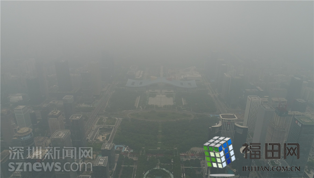整個福田中心區(qū)都籠罩在灰霾之中。