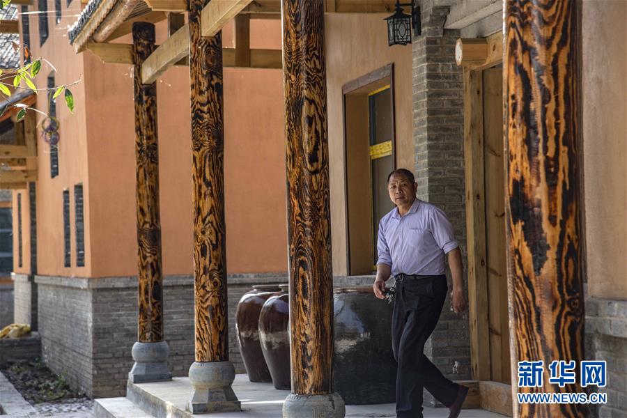63歲的劉長(zhǎng)鎖老人生于斯長(zhǎng)于斯,整個(gè)村落僅他一人(8月7日攝)。他的孩子2014年搬進(jìn)山下的新居。 新華社記者陶明攝