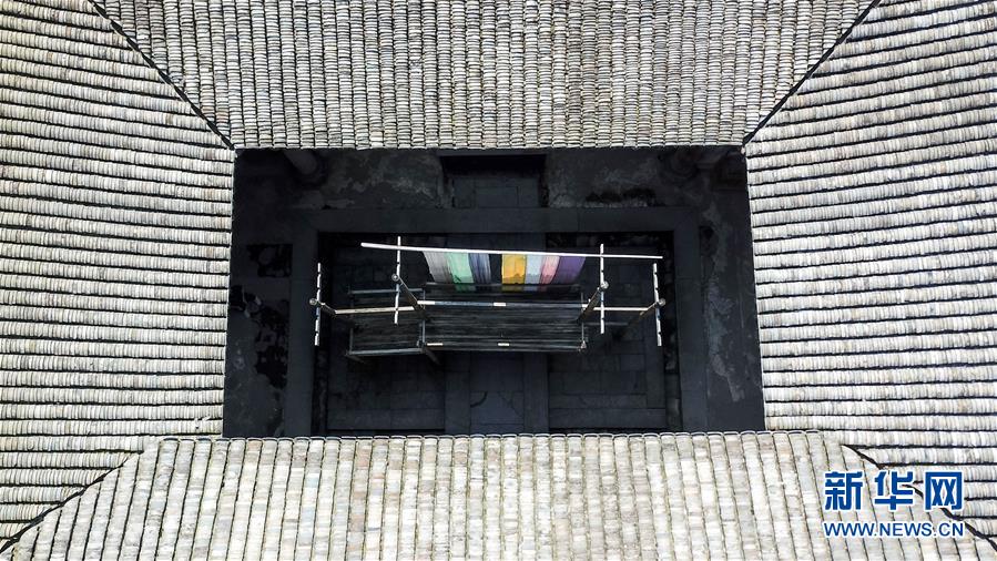 圖為仰視一座三巖民居。中新網(wǎng)記者 吉祥 攝