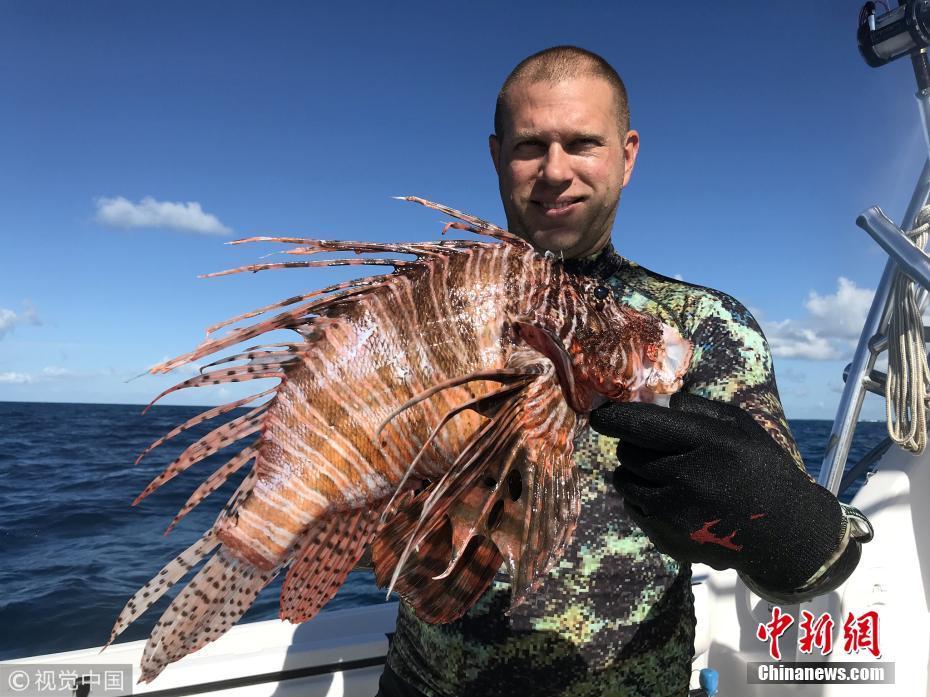 8月21日訊(具體拍攝時(shí)間不詳),近日,來(lái)自長(zhǎng)島的Timothy Blasko打破了記錄,他捕獲了大西洋最重的獅子魚(yú)。37歲的Timothy Blasko是一名技術(shù)精湛的捕魚(yú)者,當(dāng)天,他和朋友們?cè)诜鹆_里達(dá)群島伊斯拉莫拉達(dá)海岸捕魚(yú)時(shí),遇到了這條大魚(yú)。Timothy向朋友要來(lái)了魚(yú)叉,瞄準(zhǔn)大魚(yú)的下方位置叉去,正中目標(biāo)成功捕獲。當(dāng)他們把這條魚(yú)和當(dāng)天捕獲的其它魚(yú)排在一起時(shí),他們猜測(cè)這條魚(yú)可能會(huì)破紀(jì)錄。“它簡(jiǎn)直是獅子魚(yú)中的哥斯拉!” Timothy描述道,“這條巨大的獅子魚(yú)重達(dá)3.1磅,刷新了大西洋迄今最重獅子魚(yú)的國(guó)家紀(jì)錄?!眻D片來(lái)源:視覺(jué)中國(guó)