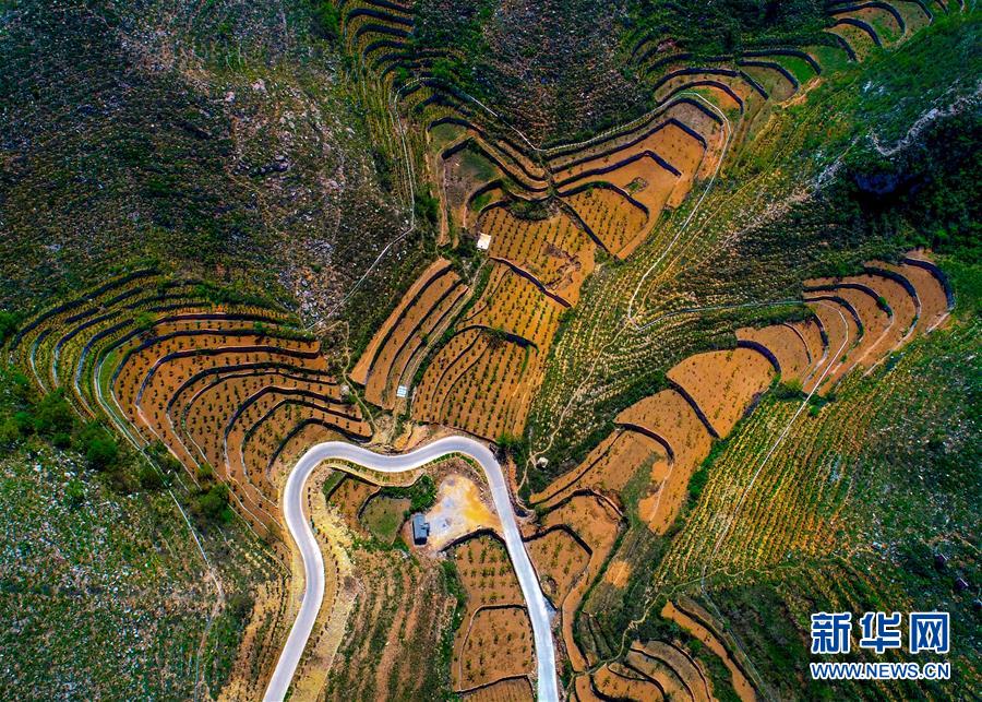 這是5月6日無人機(jī)拍攝的涉縣關(guān)防鄉(xiāng)后池村梯田和公路。初夏時(shí)節(jié),河北省邯鄲市涉縣山間的梯田綠意盎然,猶如一幅幅美麗畫卷。新華社記者 王曉 攝