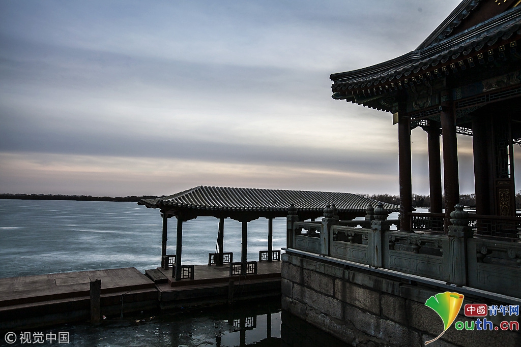 2018年2月23日,北京頤和園。當(dāng)天日落時(shí)分昆明湖上空出現(xiàn)夕陽(yáng)余暉的美景,夢(mèng)幻般的色彩將古老的皇家園林裝扮得美輪美奐,讓人流連忘返。