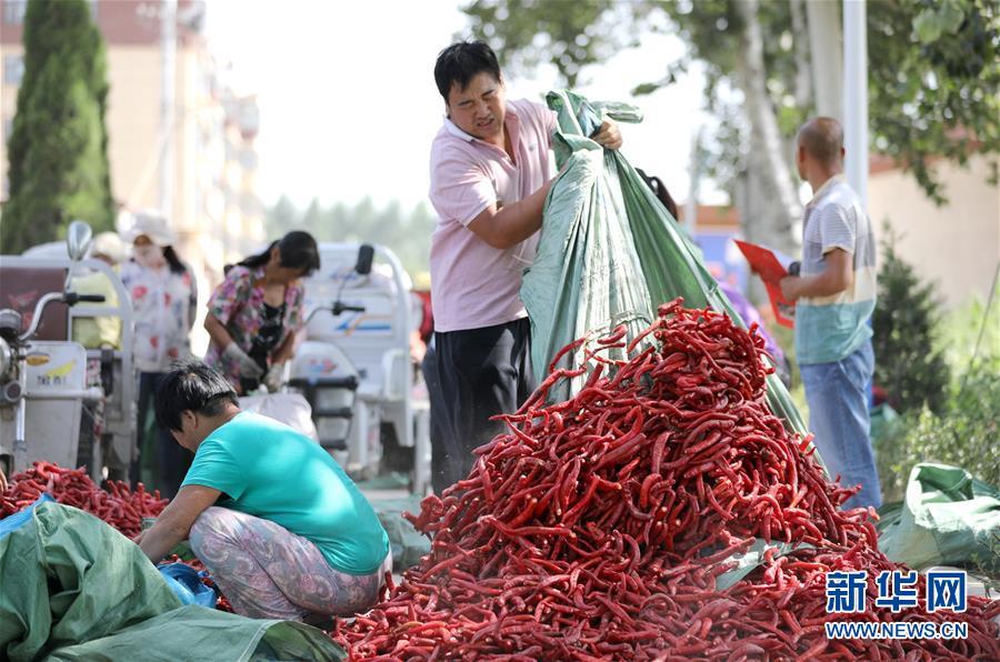 9月16日,阜城縣王集鄉(xiāng)南張莊村農(nóng)民在搬運(yùn)采摘的辣椒。近年來,河北省阜城縣王集鄉(xiāng)在推進(jìn)產(chǎn)業(yè)富民過程中,積極引導(dǎo)農(nóng)民調(diào)整農(nóng)業(yè)產(chǎn)業(yè)結(jié)構(gòu),按照品種特色化、種植規(guī)?;a(chǎn)銷一體化的“公司+基地+農(nóng)戶”的經(jīng)營模式,鼓勵(lì)農(nóng)民發(fā)展特色辣椒種植,推行“訂單種植”模式,開辟出了一條農(nóng)民創(chuàng)收新路徑。目前,阜城縣王集鄉(xiāng)辣椒種植面積3100余畝,每畝年收益2500元以上,帶動當(dāng)?shù)剞r(nóng)民實(shí)現(xiàn)增收。新華社記者朱旭東攝