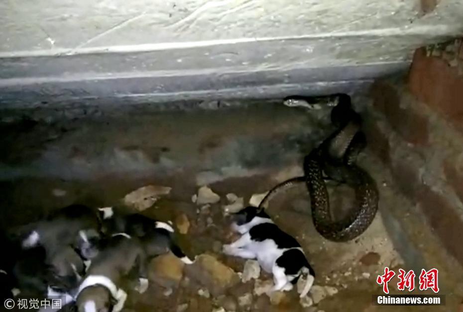 9月20日訊(具體拍攝時(shí)間不詳),印度奧里薩邦,一只寵物狗勇敢地挽救了新生幼犬的生命,它擊退了一條可怕的眼鏡蛇。面對(duì)一條巨大的斑點(diǎn)眼鏡蛇——世界上最毒的蛇之一——這位新媽媽勇敢保護(hù)僅出生兩天的幼崽。但不幸的是,盡管狗狗盡了最大的努力,蛇還是在救援人員救出幼犬之前仍殺死了4只小狗。圖片來(lái)源:視覺(jué)中國(guó)