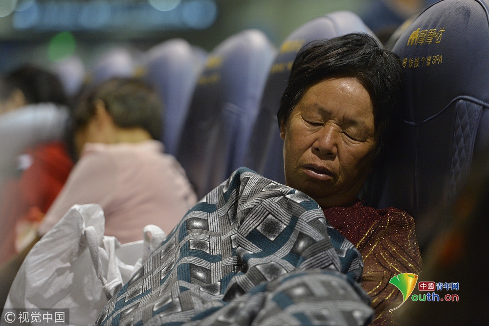 2018年9月15日,在鄭州火車站候車大廳,來自周口西華縣農(nóng)村的數(shù)百名采棉工,為趕早上4點(diǎn)50分的火車,在火車室打地鋪休息。