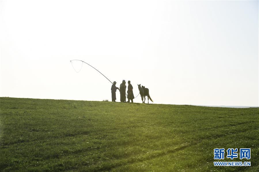 西烏珠穆沁旗草原上的牧民(7月21日攝)。盛夏時節(jié),內(nèi)蒙古錫林郭勒草原一碧千里,遙接天際。藍天白云之下,牛羊悠閑自在,馬群奔馳其中,風(fēng)光旖旎。 新華社記者 劉磊 攝