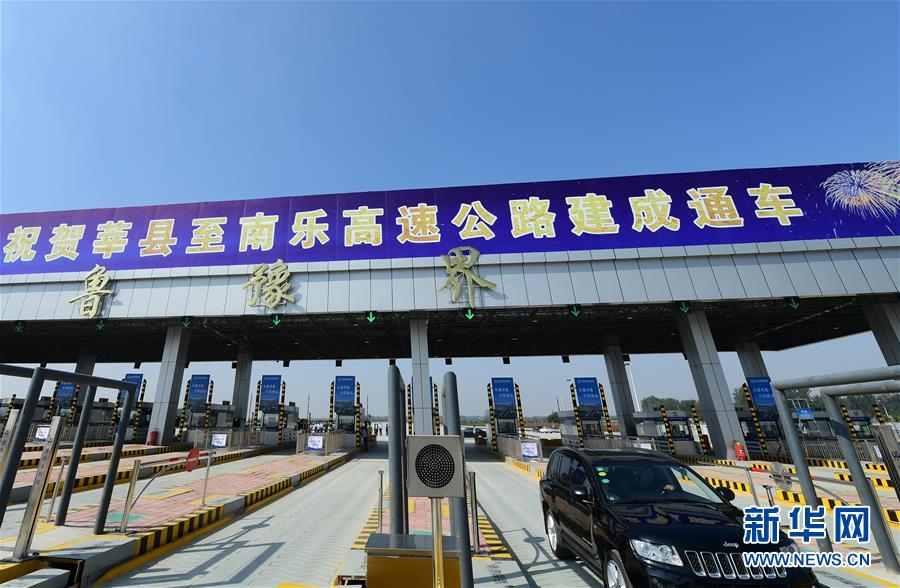 9月28日,車輛通過山東省莘縣的莘(縣)南(樂)高速魯豫界收費(fèi)站。新華社記者 馮大鵬 攝