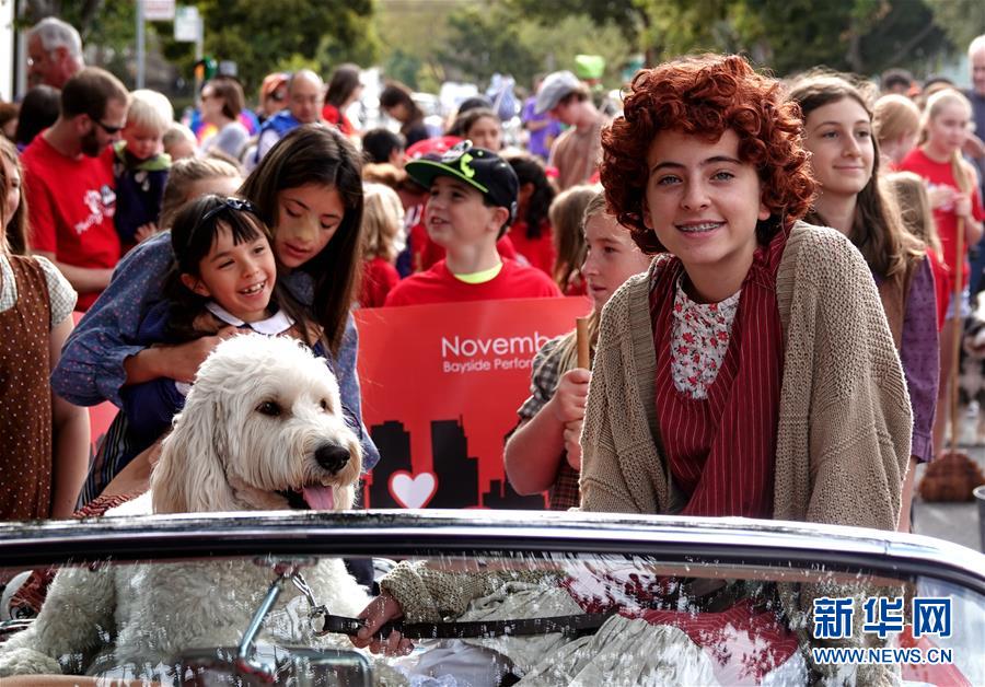 9月29日,在美國加利福尼亞州伯林蓋姆市,人們參加寵物狗大游行活動。美國加州舊金山灣區(qū)的伯林蓋姆市29日舉行寵物狗大游行活動。新華社記者吳曉凌攝