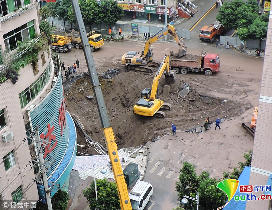 四川達州一人行道塌陷致2人死亡 救援仍在進行