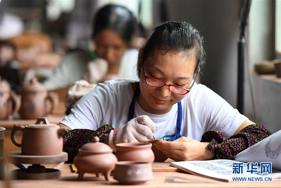 10月9日,欽州市一家廣西坭興陶生產(chǎn)企業(yè)的員工在制作坭興陶產(chǎn)品。