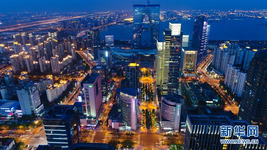 2017年5月15日無(wú)人機(jī)拍攝的蘇州工業(yè)園區(qū)金雞湖夜景。 小橋流水,粉墻黛瓦,蘇州,這座經(jīng)歷了2500多年歲月洗禮的國(guó)家歷史文化名城,以“人間天堂”名揚(yáng)天下。 作為改革開(kāi)放排頭兵,歷經(jīng)40載發(fā)展,蘇州已經(jīng)坐上全國(guó)人均GDP第三大城市、規(guī)模以上工業(yè)總產(chǎn)值第二大城市、經(jīng)濟(jì)總量第一大地級(jí)市的交椅。 如今,站在新的時(shí)空起點(diǎn),處于高質(zhì)量發(fā)展關(guān)鍵躍升期的蘇州,一場(chǎng)更高水平改革開(kāi)放的深刻蛻變正在穩(wěn)健進(jìn)行,一個(gè)更加富足美麗幸福的“新天堂”呼之欲出。 新華社記者 李響 攝