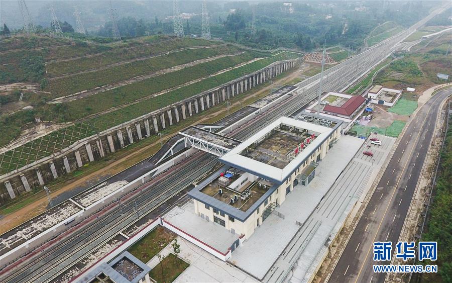 成雅鐵路成朝段朝陽湖站(10月14日無人機(jī)拍攝)。新華社記者薛玉斌攝