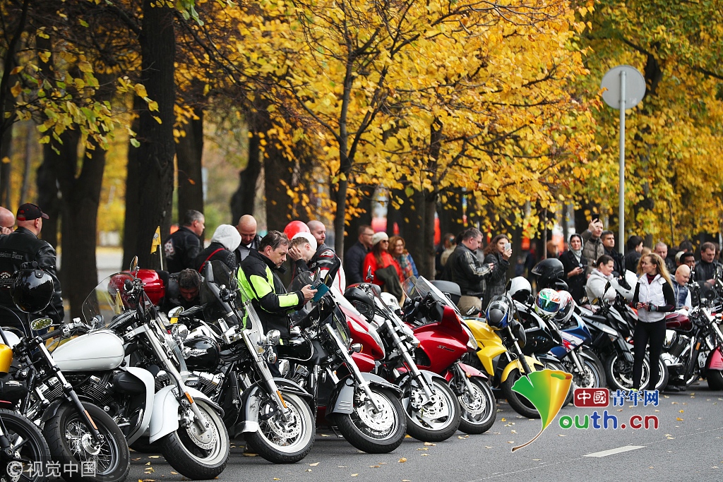 當?shù)貢r間2018年10月13日,俄羅斯莫斯科,當?shù)嘏e行摩托車游行。