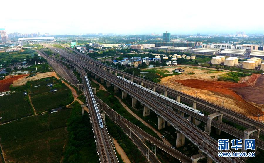 一列動(dòng)車在南寧市區(qū)行駛(9月4日無人機(jī)拍攝)。 廣西壯族自治區(qū)成立60年來,鐵路建設(shè)發(fā)生翻天覆地的變化。來自中國(guó)鐵路南寧局集團(tuán)有限公司的數(shù)據(jù)顯示,1958年廣西鐵路總里程為1346.3公里,如今廣西鐵路總里程達(dá)5191公里。廣西與周邊相鄰省份間實(shí)現(xiàn)動(dòng)車“公交化”開行。此外,北部灣港—重慶班列、東盟海產(chǎn)品冷鏈班列、“百色一號(hào)”果蔬專列等的開通和運(yùn)營(yíng),強(qiáng)化了鐵路供給的針對(duì)性和有效性。鐵路成為助推廣西經(jīng)濟(jì)社會(huì)快速發(fā)展的“大動(dòng)脈”。 新華社記者陸波岸攝