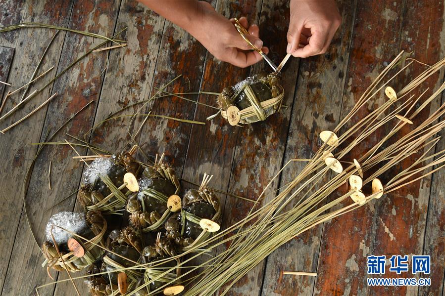 10月17日,湖州廟港人水產有限公司蟹農在太湖養(yǎng)殖基地包裝大閘蟹。 時值重陽,太湖南岸的大閘蟹開始大批量上市,迎來豐收季。浙江省湖州市近年來結合太湖水治理,提升太湖漁業(yè)資源質量。目前,湖州太湖蟹養(yǎng)殖面積3.6萬畝左右,年產3000多噸。 新華社記者翁忻旸攝