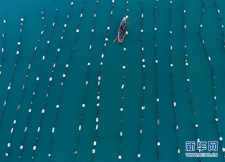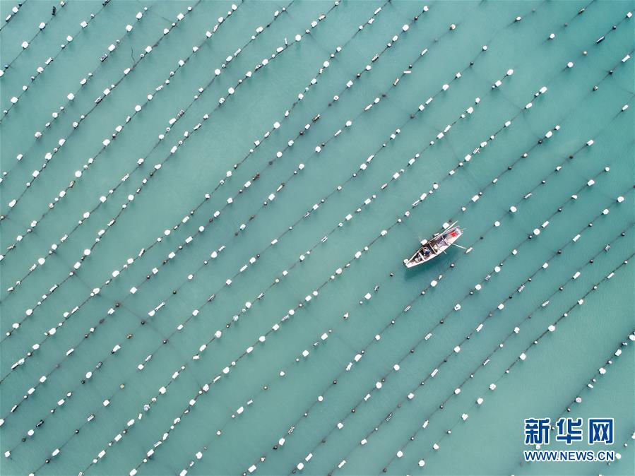 8月18日,南麂島馬祖岙海灣內,養(yǎng)殖戶乘船在貽貝養(yǎng)殖區(qū)內作業(yè)(無人機拍攝)。進入8月,浙江省溫州市平陽縣南麂鎮(zhèn)海域上大片的大黃魚、貽貝等特色海產品養(yǎng)殖區(qū)域迎來豐收季節(jié),養(yǎng)殖戶們駕駛漁船在養(yǎng)殖區(qū)海域進行打撈收獲,在碧海藍天下構成了一幅“海上牧場”的美麗豐收景象。近年來,南麂鎮(zhèn)政府引導漁民養(yǎng)殖戶充分發(fā)揮“靠海吃?!钡馁Y源優(yōu)勢,大力發(fā)展海洋養(yǎng)殖經濟和海島旅游經濟,實現(xiàn)了南麂由“生態(tài)美”向“產業(yè)美”,“產業(yè)美”向“經濟美”的轉變。同時該鎮(zhèn)堅持以大黃魚、貽貝等為特色產業(yè)支撐,精準發(fā)展高效海洋養(yǎng)殖業(yè),重點培養(yǎng)一批新型職業(yè)漁民,依靠專業(yè)技術支持,實現(xiàn)深海仿生養(yǎng)殖,讓好生態(tài)造就好品質,重點打造南麂養(yǎng)殖品牌,組建營銷網(wǎng)絡,拓展特色海產品市場。新華社記者 徐昱攝