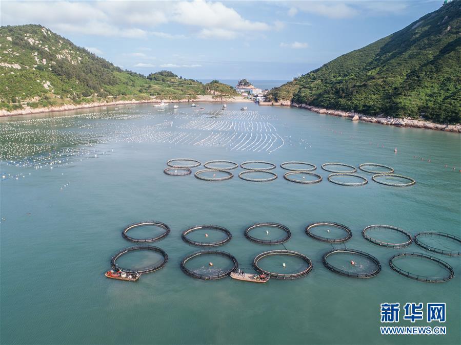 相關鏈接 東?!昂I夏翀觥庇S收 8月19日,空中俯瞰南麂島海域內的“海上牧場”養(yǎng)殖區(qū)(無人機拍攝)。南麂島位于浙江東南海域,水質好,水溫、鹽度都適合大黃魚等養(yǎng)殖魚類的生長繁殖,因此當?shù)氐乃a品也一直保持了較高的品質和口碑。進入8月,浙江省溫州市平陽縣南麂鎮(zhèn)海域上大片的大黃魚、貽貝等特色海產品養(yǎng)殖區(qū)域迎來豐收季節(jié),養(yǎng)殖戶們駕駛漁船在養(yǎng)殖區(qū)海域進行打撈收獲,在碧海藍天下構成了一幅“海上牧場”的美麗豐收景象。近年來,南麂鎮(zhèn)政府引導漁民養(yǎng)殖戶充分發(fā)揮“靠海吃?!钡馁Y源優(yōu)勢,大力發(fā)展海洋養(yǎng)殖經濟和海島旅游經濟,實現(xiàn)了南麂由“生態(tài)美”向“產業(yè)美”,“產業(yè)美”向“經濟美”的轉變。同時該鎮(zhèn)堅持以大黃魚、貽貝等為特色產業(yè)支撐,精準發(fā)展高效海洋養(yǎng)殖業(yè),重點培養(yǎng)一批新型職業(yè)漁民,依靠專業(yè)技術支持,實現(xiàn)深海仿生養(yǎng)殖,讓好生態(tài)造就好品質,重點打造南麂養(yǎng)殖品牌,組建營銷網(wǎng)絡,拓展特色海產品市場。新華社記者 徐昱攝