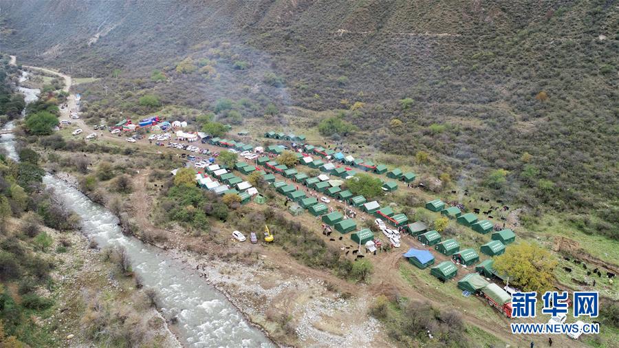 這是西藏昌都市江達(dá)縣波羅鄉(xiāng)熱多村臨時過渡安置點(diǎn)(10月14日無人機(jī)拍攝)。新華社記者劉東君攝