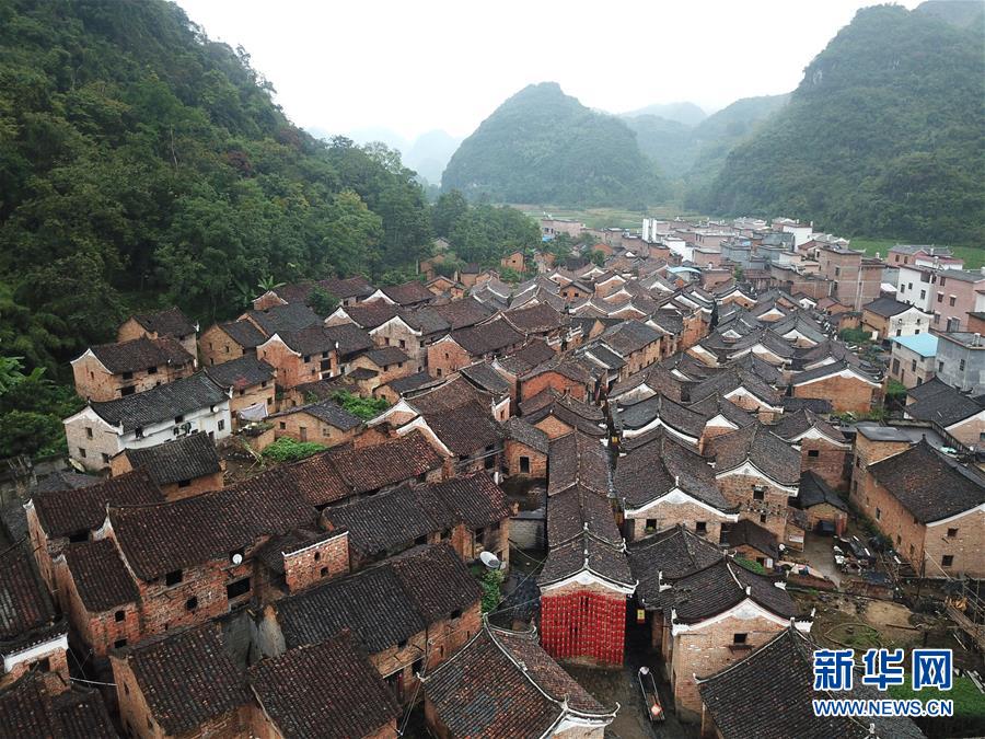 廣西富川瑤族自治縣朝東鎮(zhèn)秀水村連片民居(10月19日無人機拍攝)?!⌒氯A社記者 周華 攝