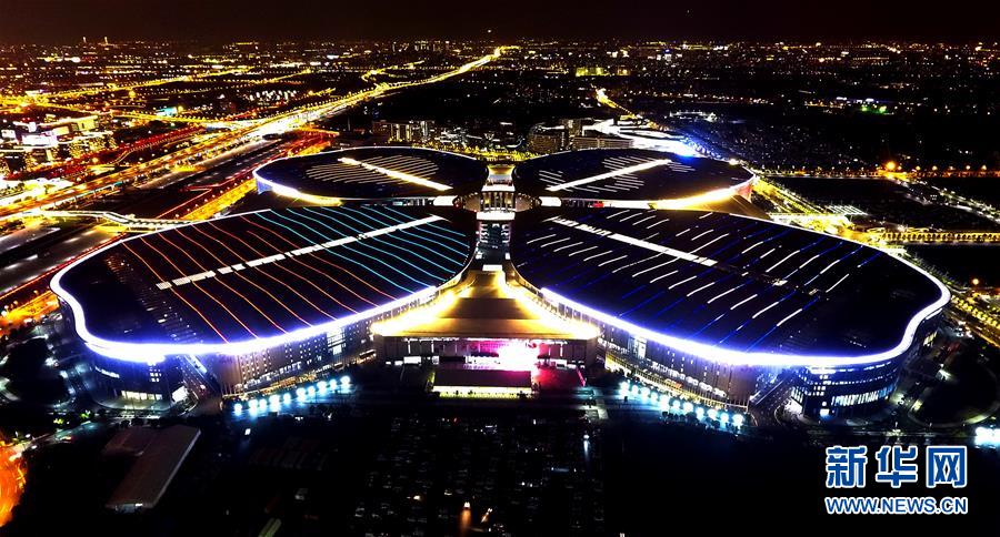 夜幕下的國(guó)家會(huì)展中心 “四葉草”燈光璀璨