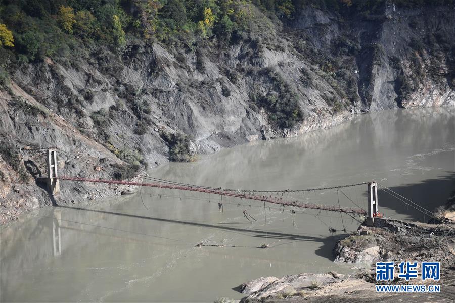 10月20日,西藏雅魯藏布江米林縣堰塞湖自然過(guò)流后,通往加拉村的大橋完全浮出江面。 10月19日13時(shí)30分,西藏雅魯藏布江米林縣堰塞湖開(kāi)始自然過(guò)流。記者從應(yīng)急管理部牽頭的聯(lián)合工作組獲悉,截至20日7時(shí),雅魯藏布江堰塞湖壩前水位已下降56米,估算留存水量1.6億立方米,堰塞湖洪水威脅得到緩解,防洪安全風(fēng)險(xiǎn)大大減輕,并將繼續(xù)降低。 10月20日,記者乘坐直升機(jī)從空中拍攝了雅魯藏布江堰塞湖自然過(guò)流的畫(huà)面。 新華社記者普布扎西攝