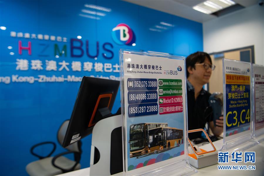 位于港珠澳大橋澳門邊檢大樓的穿梭巴士售票處(10月19日攝)。 港珠澳大橋將于本月24日通車運營,成為連接香港、澳門的新通道。記者19日驅車前往澳門口岸實地采訪,了解口岸內部設置和準備工作情況。 新華社記者 張金加 攝