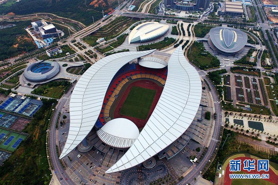 圖為無人機(jī)航拍的體育中心比賽場(chǎng)館(攝于2018年10月22日)。新華網(wǎng) 章佳禮攝