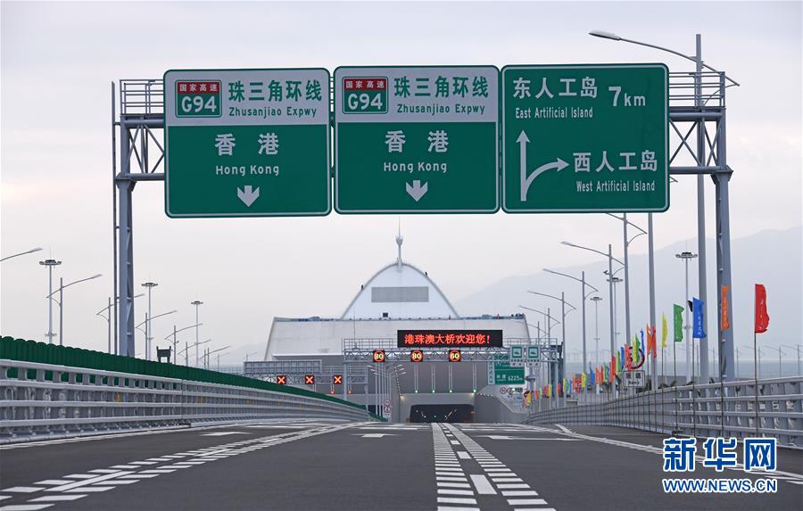 港珠澳大橋西人工島隧道口(2018年10月20日攝)。 金秋十月,伶仃洋上海天一色、潮聲陣陣,依傍著這片中國南海水域的城市群迎來深具意義的一天。 10月23日上午,港珠澳大橋開通儀式在廣東珠海舉行,中共中央總書記、國家主席、中央軍委主席習近平出席儀式,宣布大橋正式開通。 碧波之上,一橋飛架香港、澳門、珠海三地,以氣貫長虹的“中國跨度”,飛越滄海百年的歷史風云,展現(xiàn)當代中國的雄健風采。 新華社記者梁旭攝