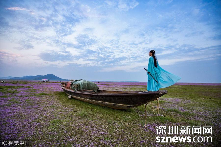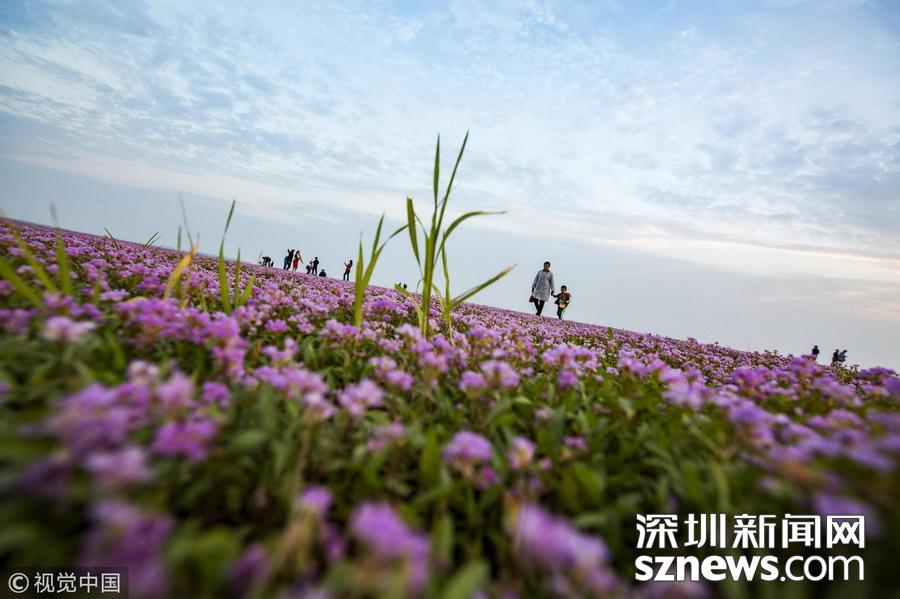 深圳新聞網(wǎng)訊 2018年10月23日,南昌,游人在江西鄱陽湖都昌濕地蓼子花海內(nèi)游玩。連日來,中國第一大淡水湖江西鄱陽湖濕地大面積蓼子花開放,秋景宜人,紫色的花海吸引大批游客前來賞景游玩。