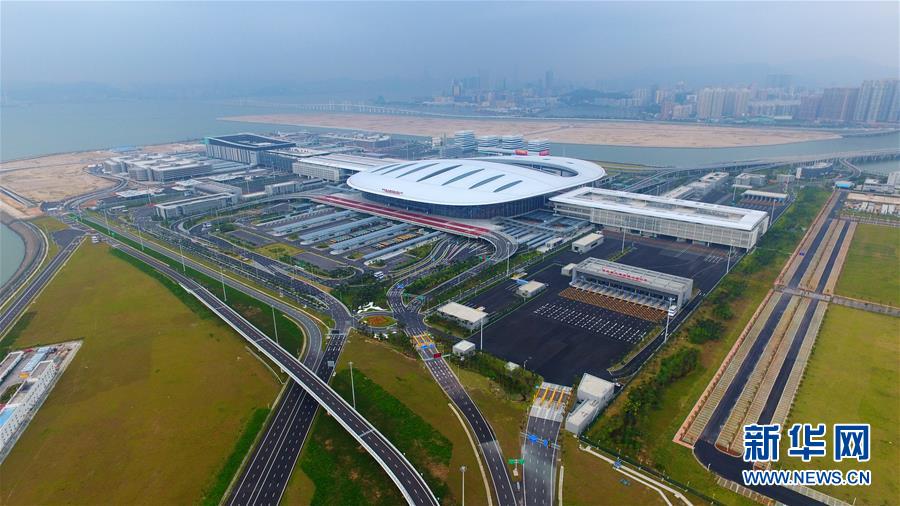 10月24日無人機拍攝的港珠澳大橋珠海公路口岸。當(dāng)日9時,港珠澳大橋正式通車。 新華社記者梁旭攝