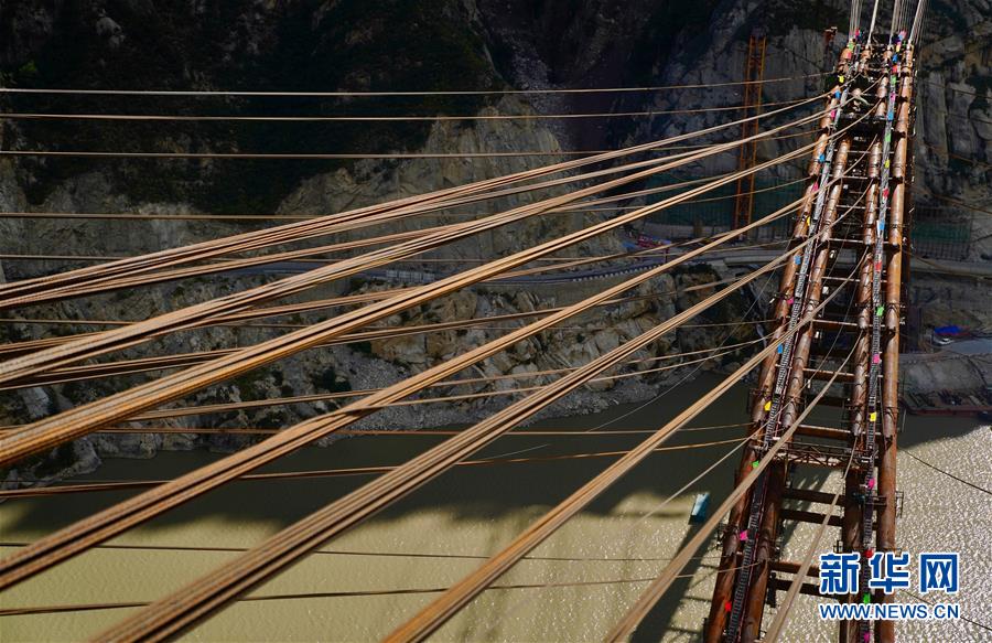 9月28日拍攝的川藏鐵路拉林段重點標(biāo)志性工程藏木特大橋。 當(dāng)日,隨著最后一節(jié)鋼管拱的對位和鎖定完畢,川藏鐵路拉林段藏木特大橋成功合龍,標(biāo)志著大橋主體結(jié)構(gòu)施工取得了關(guān)鍵性勝利。藏木特大橋由中國中鐵廣州局集團(tuán)承建,拱高112米,橋橫跨雅魯藏布江峽谷,水深66米。 新華社記者普布扎西攝