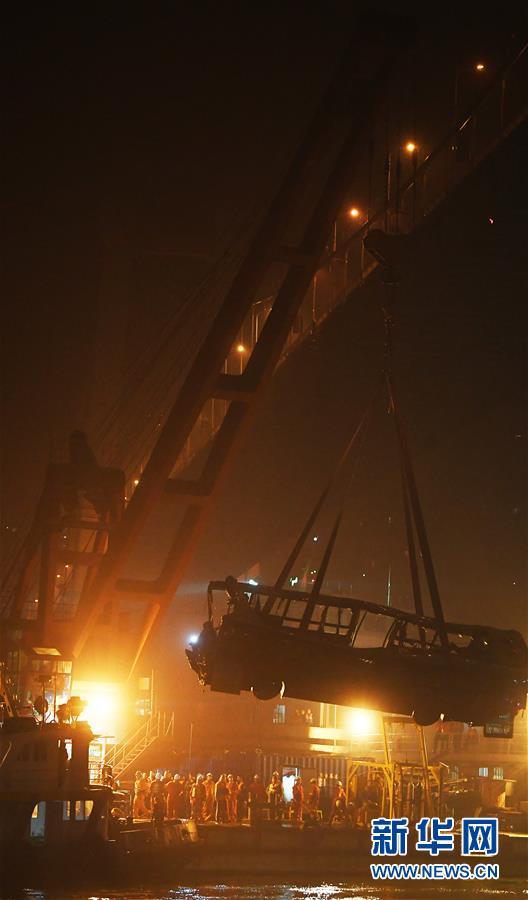 10月31日23時(shí)30分左右,記者在重慶萬州江面的打撈現(xiàn)場(chǎng)看到,隨著浮吊船的吊索緩緩提升,墜江的公交車被打撈出水面。 10月28日10時(shí)8分,重慶市萬州區(qū)一輛公交車行駛至長江二橋時(shí),與一輛小轎車相撞后墜江。經(jīng)公安機(jī)關(guān)初步核實(shí),失聯(lián)人員15人。